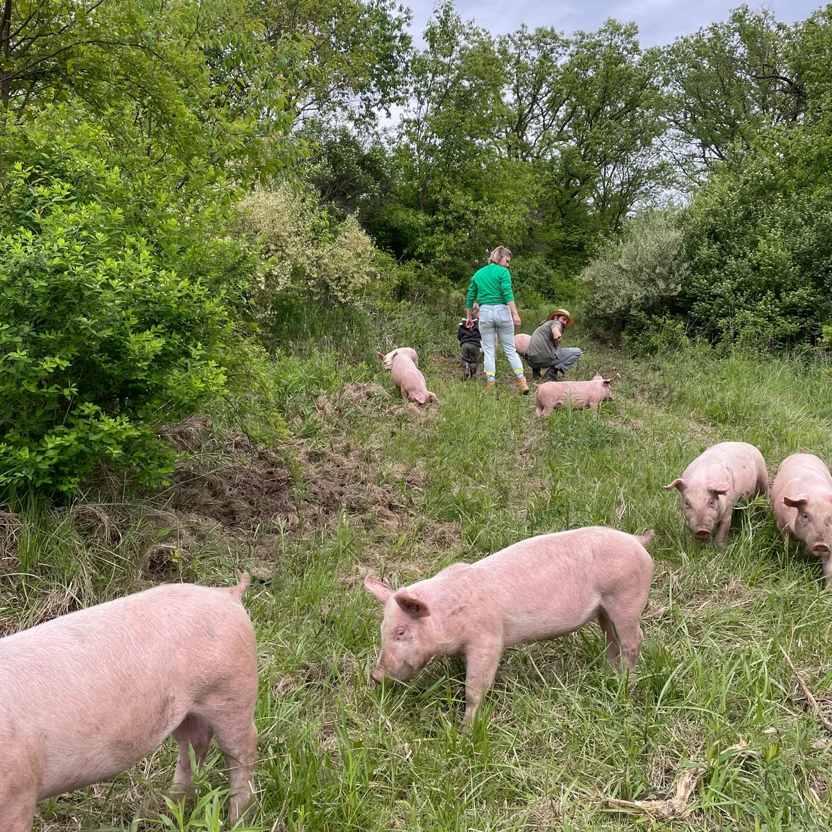 When you cook with pasture-raised pork, you’re part of a story that begins in healthy soil. Healthy soils translate to more nutritious and tastier food. Our pigs help regenerate the land by aerating the soil and fertilizing naturally as they clear the woods of brushy undergrowth. Every roast supports a farming system that respects animals, restores ecosystems, and nourishes people.